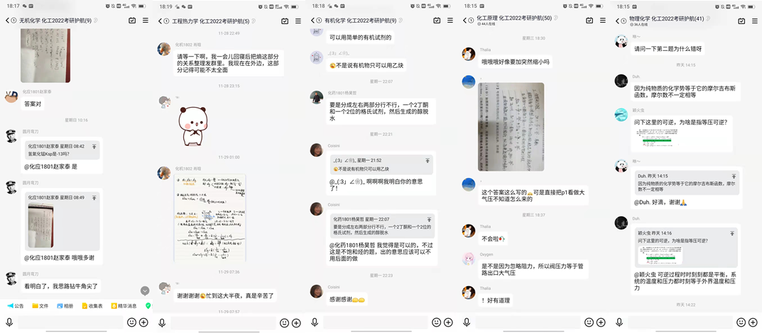 公司开设无机化学、有机化学、物理化学、化工原理、数学等11门考研专业课课程答疑群,根据擅长科目选拔17位“雷锋讲师团”成员驻群至考研结束,负责疑难问题解答、题型讲解和辅导。