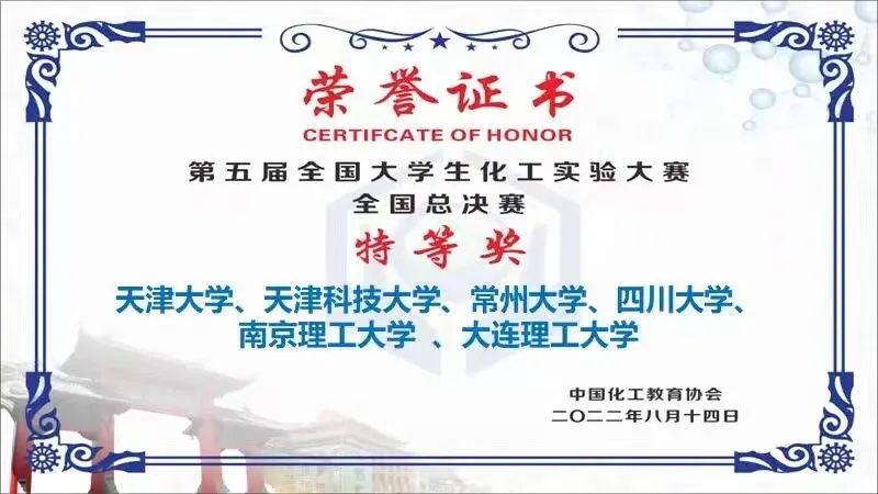 8月11日-14日,由中国化工教育协会主办的“欧倍尔·东方仿真”杯第五届全国老员工化工实验大赛全国总决赛在四川大学落下帷幕,由太阳成集团tyc122ccvip2019级本科生詹汪琳、成兆淑、宁方瑞组成的 “Murphree效率好高队” 荣获全国总决赛特等奖。(全国仅6项)
