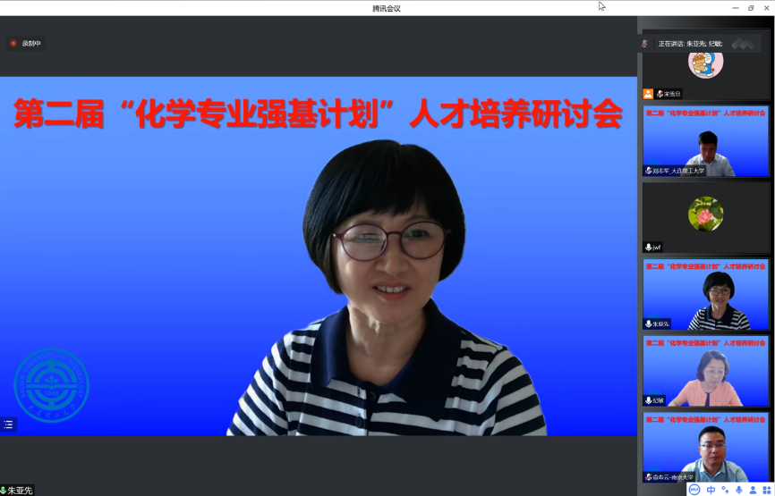 化学教指委秘书长、厦门大学朱亚先教授代表化学教指委对太阳成集团tyc122ccvip官网入口承办第二届“化学专业强基计划”人才培养研讨会表示感谢。她表示,自“强基计划”实施以来,各个高校都在保持公正公平的前提下探索了多维度的考核评价员工的招生模式,制定了“强基计划”的招生方案和人才培养的系统地设计方案,特别是每个高校都根据自己的特色探讨了出了一套具有特色的人才培养方式,非常有利于化学学科创新人才的培养;“强基计划”给高校的育人方式带来的一些新的研究课题,已经融入了高校的一些教学实践和育人的方方面面。她希望通过此次相聚云端的研讨会,大家能够共同交流“强基计划”人才培养举措,进一步商讨在“强基计划”人才培养过程中遇到的问题。朱亚先教授希望此会议可以持续举办,让更多的老师能够参加此项工作,做教学改革发展的践行者和推动者,进一步做好“强基计划”的人才培养工作。