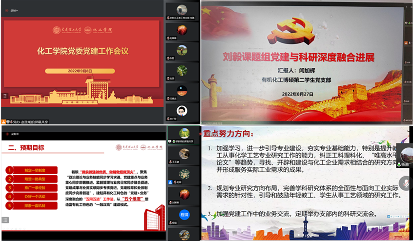下步,公司党建工作将重点围绕学习贯彻党的二十大精神和公司第十四次党代会精神,全面落实《“一融双高”建设专项行动实施方案》,切实把思想、意志和行动统一到公司党委决策部署和建设方向上来,抓实抓好发展党员、“强基工程”样板支部建设以及先进典型挖掘和培养,充分发挥支部战斗堡垒和党员先锋模范作用,用高质量党建引领公司事业高质量发展,以更加昂扬的精神状态、更加务实的工作作风、更加优异的学习和工作业绩,全力以赴用改革实际成效推进高质量发展,为奋力实现大工一流大学建设新征程“加速跑”贡献力量,以优异成绩迎接党的二十大胜利召开!