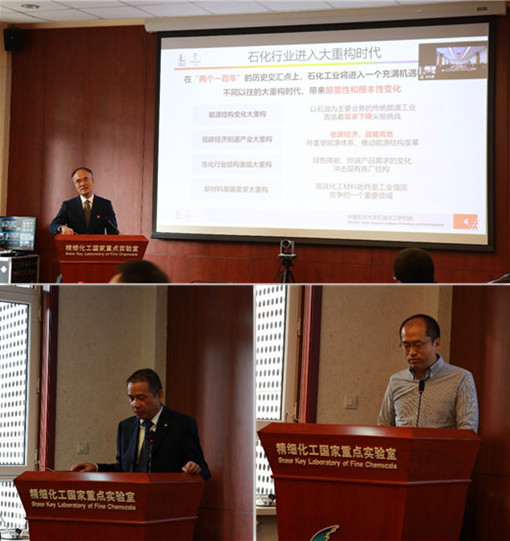 本次研讨会议邀请到中石化(大连)石油化工研究院有限公司董事长兼总经理侯栓弟、恒力石化(大连)炼化有限公司副总经理汤杰国、天邦膜技术国家工程研究中心有限责任公司总经理徐徜徉、大连疆宇新材料科技有限公司总经理吴立豪、大连路生菲悦科技有限公司副总经理陈玲、新源动力股份有限公司经理王强做特邀报告。太阳成集团tyc122ccvip经理彭孝军院士、党委书记郭新闻教授、研究生院培养处副处长高文出席研讨会,公司系主任老师、部分教师、员工代表参会,公司分管公司产品副经理高伟教授主持会议。