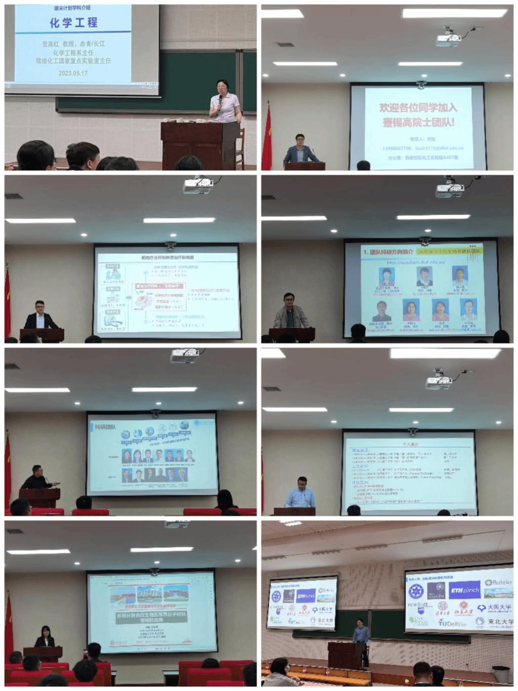 各系主任对本系的专业发展、研究方向、团队队伍、人才培养、科研成果、平台基地、就业情况等作详细介绍。各系教师代表作团队介绍、个人介绍及学术报告,药学系主任李广哲教授结合视频介绍了“靶向抗肿瘤药物创新与转化研究”;化学工艺系杨赫副教授通过实物教学对“通用煤热转化模型的研究”作精彩讲述;化学工程系张磊副教授分享了“当化学遇上计算机:分子的智能设计”;现场气氛活跃。各系主任和教师代表与参会同学进行了深入交流,并邀请同学们提前到主校区实验室参观学习,与会同学兴趣盎然,受益匪浅。