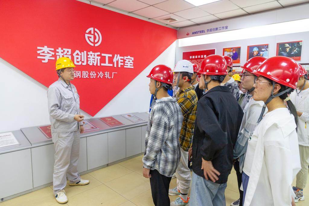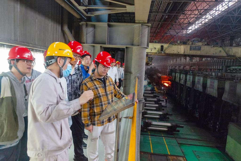 7月7日,团队一行来到鞍钢集团,作为新中国第一个恢复建设的大型钢铁联合企业和最早建成的钢铁生产基地,鞍钢被誉为“新中国钢铁工业的摇篮”。团队师生在鞍钢集团钢铁研究院团委书记孙艺娜的带领下,依次参观鞍钢炼铁总厂3号高炉、热轧带钢厂2150生产线和冷轧厂四分厂,对“钢铁是怎样炼成的”有了更直观、深入的认识。在鞍钢博物馆,团队成员在讲解员的讲解中学习了解鞍钢历史,充分感受到鞍钢集团“铭记长子担当,矢志报国奉献”的初心。参观结束后,团队与在鞍钢的大工员工、HR组织座谈交流会,针对员工在企业的发展、鞍钢人才吸引政策进行交流,同学们针对就业等问题展开深入讨论。