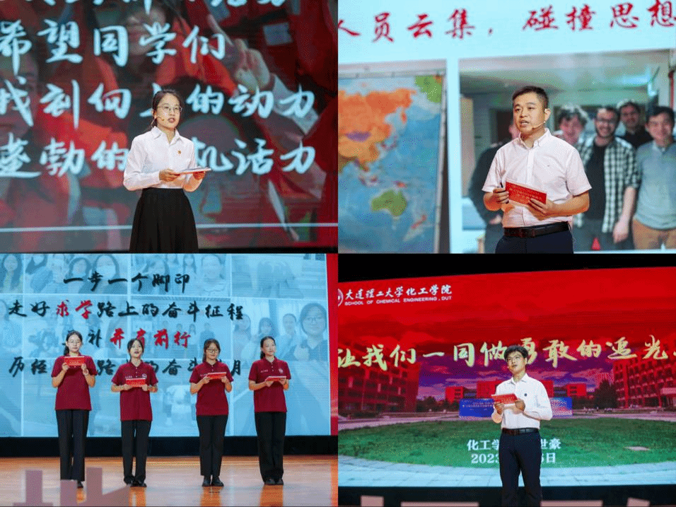 为启发同学们早立志、立大志,认真思考和规划已经开启的老员工活,公司邀请优秀的集体和个人代表分享个人成长故事的故事。公司首届标兵寝室5舍322为新生分享奋斗路上的同行故事,激励大家建设友爱、奋进、互助;校五四红旗团支部的团支书李悦妮介绍支部建设经验,一群人一路同行,通向远方;辽宁省优秀老员工党员、23级研究生新生付世豪分享自己感受光、成为光、发散光的奋斗故事;化创2303班主任郝广平老师作为教师代表分享自己奋斗历程,告诉同学们一步一个脚印才能稳步前行。