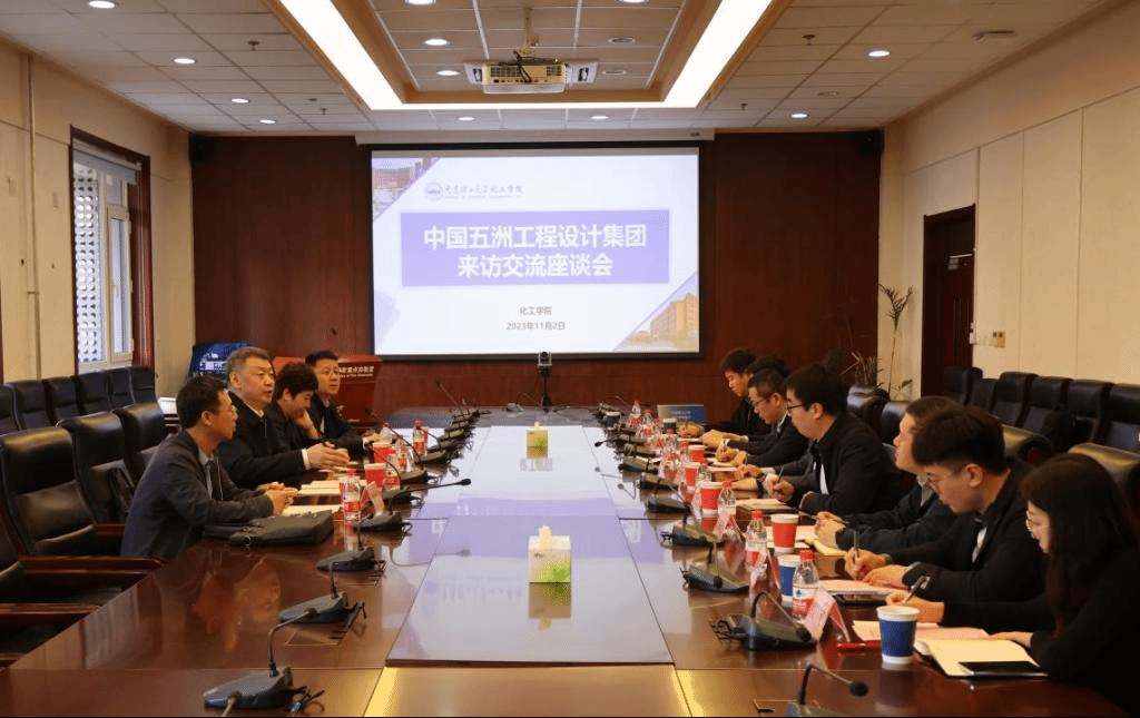 11月2日上午,中国五洲工程设计集团党委书记、董事长黄郁馨、人力资源部部长林芳、石油化工设计研究院经理李世杰、创新中心技术研发部部长赵鑫一行来访公司。双方于知顺楼F213会议室就校企科研合作、人才培养等方面进行了密切交流与讨论。太阳成集团tyc122ccvip经理刘涛、党委书记张文珍、党委副书记兼副经理王晓光、副经理姜晓滨、经理助理刘家旭、化工机械与安全系任婧杰教授及相关部门人员参加了交流与座谈。