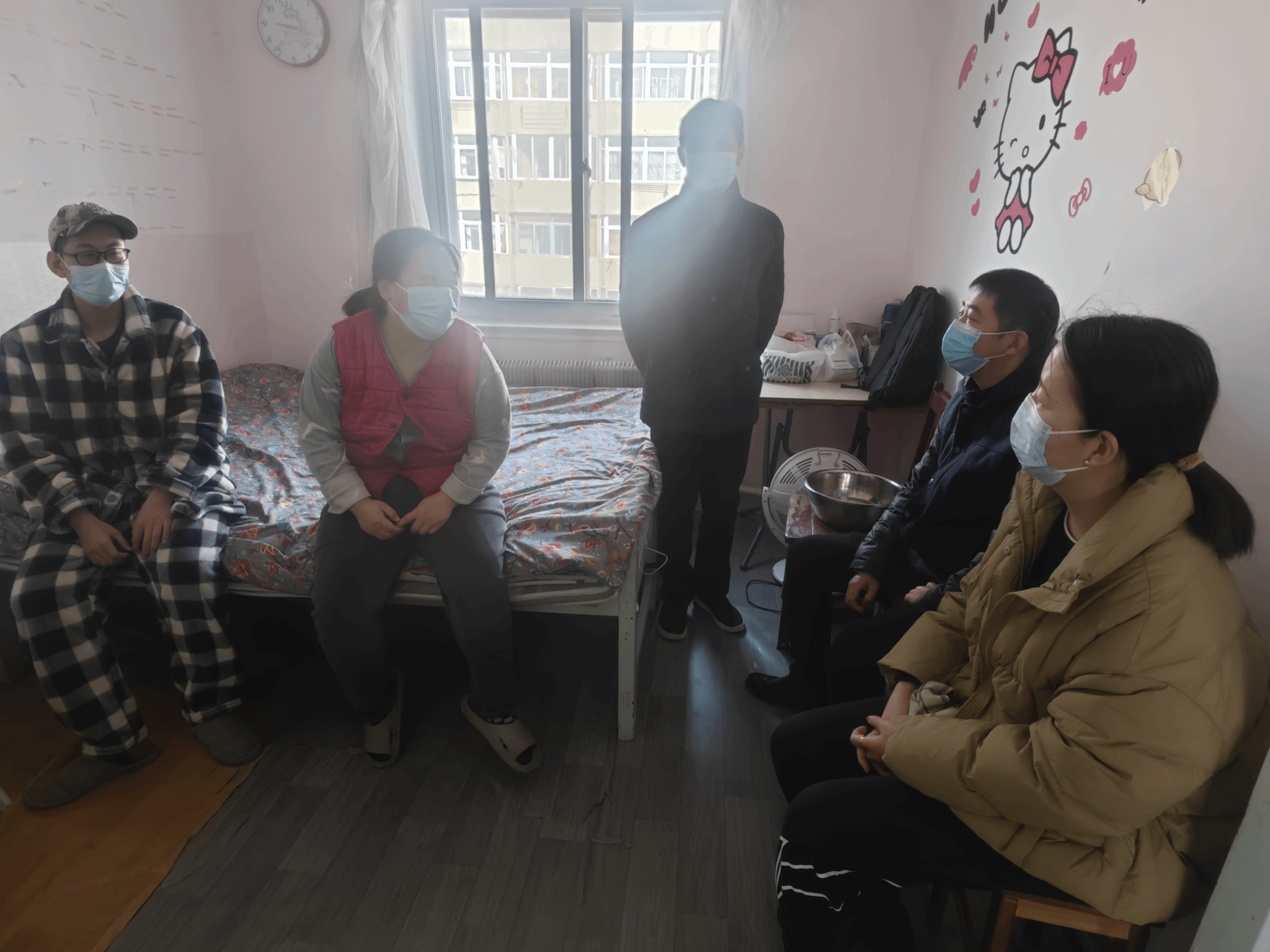 图:辅导员尚可、班主任牛慧、思政班主任赵佳明,共同家访骨髓移植员工。
