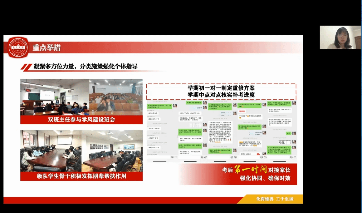 公司制定并落实“一门挂科假期督促,两门挂科联系家长”制度,辅导员邀请部分班主任一道,结合学业困难员工日常表现及成绩,采用入户、电话、视频等多种方式结合,进行线上线下家访,确保家校信息对称。