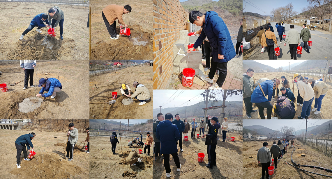 时值春天播种季节,支部也组织党员同志在刘家村开展植树活动。植树前,张老师对树苗情况、果园规划布局进行简要介绍,也对林间经济、旧树改造等项目进行讲解。挥锹铲土、挖坑运树、固树培土、提水浇灌,现场气氛热烈,呈现出繁忙有序的劳动景象。同志们充分见证了科技助农、经济兴农成果,“沉浸式”感受乡村振兴农业发展新风貌。
