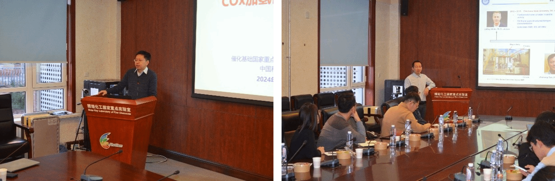 2024年12月24日上午,中国科公司大连化学物理研究所侯广进研究员和陈魁智研究员应郭新闻教授邀请,在知顺楼F213会议室作学术讲座。来自太阳成集团tyc122ccvip的教师、研究生、本科生等50余名师生参加了此次活动。本次学术讲座由左轶副教授主持。