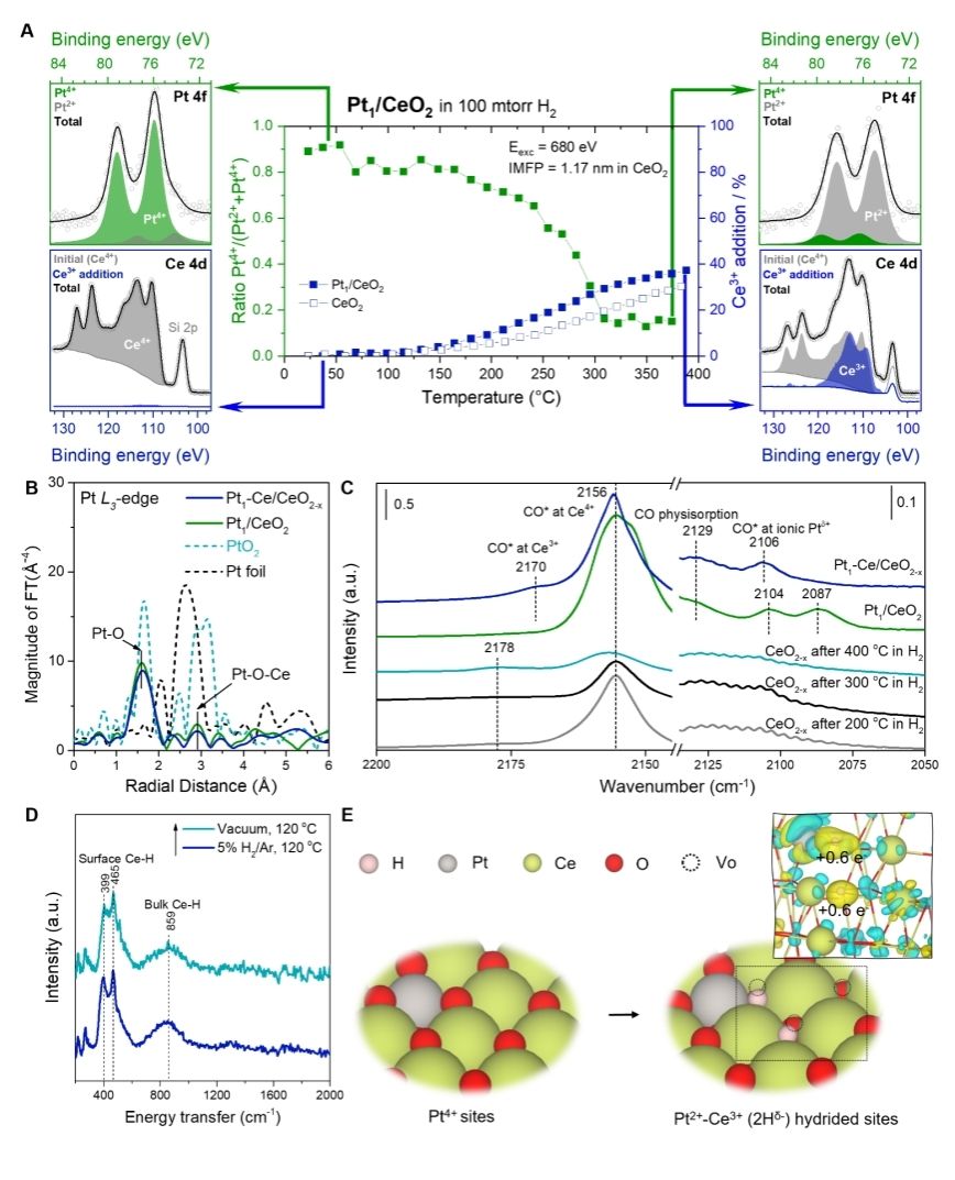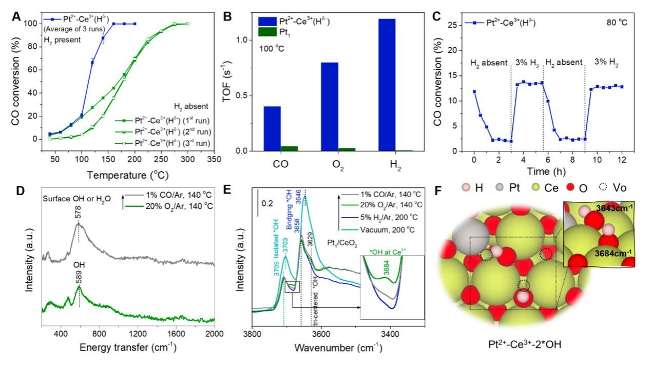 Pt2+-Ce3+(Hδ)氢化位催化剂的催化性能和增强的O2活化