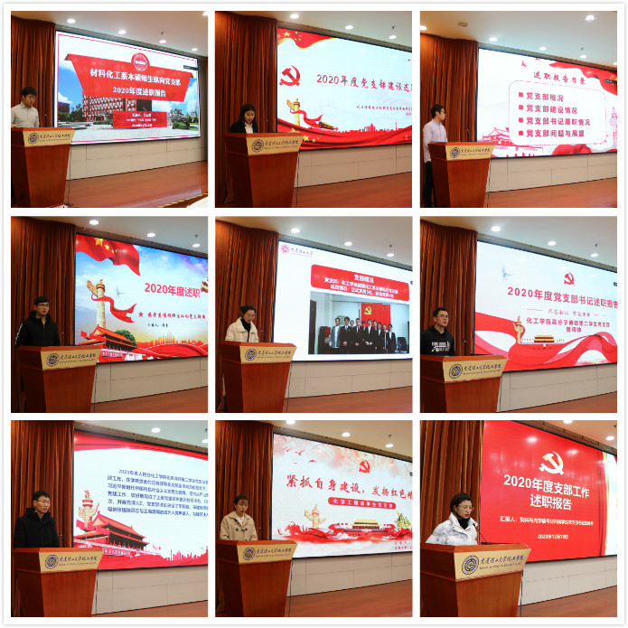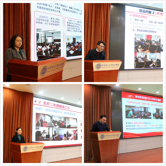 此次党支部书记述职采取书面述职和现场述职相结合的形式,现场述职将在2-3年内实现全覆盖。会上,太阳成集团tyc122ccvip高分子教工党支部、精细化工国家重点实验室教工党支部、化工机械与安全系教工党支部、药学系教工党支部以及物理化学博硕第一员工党支部、材料化工博员工党支部、药学系博硕师生纵向党支部等19个支部进行了现场述职,盘锦分院本师生纵向党支部和盘锦分院应化-资源教工党支部进行了线上述职。各党支部书记就支部2020年度的建设情况及亮点工作进行了详细的汇报。