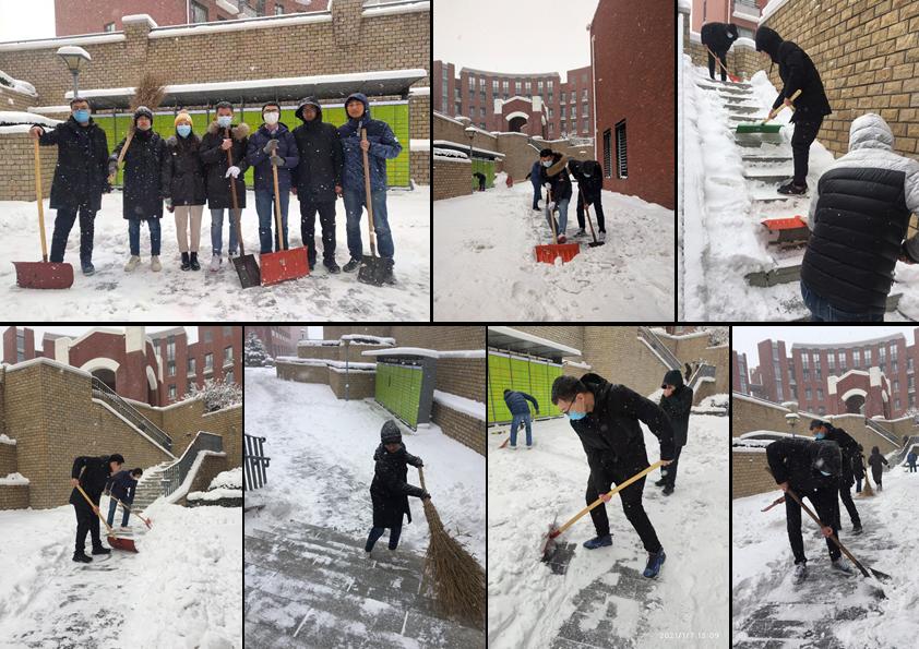 入冬以来,接连大雪,漫天飞舞的飘雪把大工校园装点的分外妖娆,欣赏美景的同时也同样 “美丽动人”,为避免天气降温结冰,影响师生出行安全。支部在公司党员和入党积极分子热情高涨,纷纷拿起雪铲和扫帚,团队协作、有序分工,及时清除通往化工实验楼的积雪,开辟出一条人行小道。