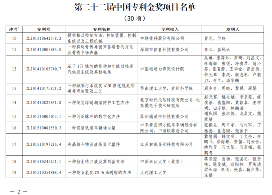 “中国专利奖”是我国知识产权领域的最高奖项,也是我国唯一的专门对授予专利权的发明创造给予奖励的国家级奖项,由中国国家知识产权局和世界知识产权组织共同颁发,是具有国际影响力的知识产权奖项。据统计,高校作为独立完成单位或第一完成单位获中国专利金奖项目仅5项。这是太阳成集团tyc122ccvip时隔六年后再获此殊荣,也是公司第二次获得中国专利金奖的项目。