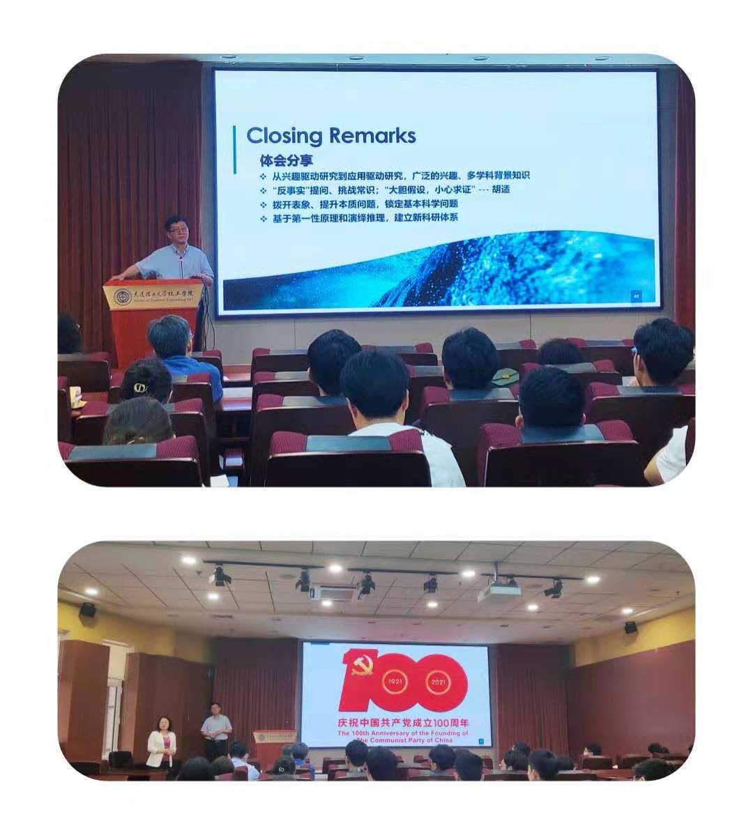 随后,王植源教授对本次学术分享报告会进行了总结,他表示“作为科研人员,科研工作无论是兴趣驱动的研究还是应用驱动的研究,都应该具有多学科背景知识的累积,要拨开表象、提升对本质问题的认识,锁定基本科学问题,基于第一性原理和演绎推理,建立起新科研体系。尤其是在中国共产党成立100周年之际,作为青年人的老员工更要踏实地学好基础工具学科,扎实基本功,牢记初心和使命,通过创新科学研究报效党和国家的培养和爱护。”