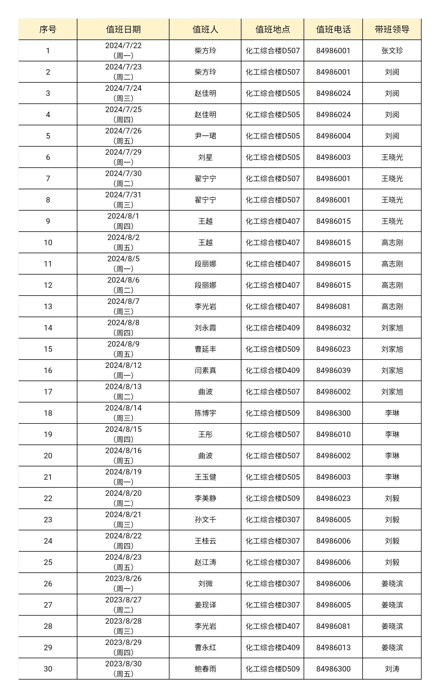 三、具体值班安排信息详见下表: