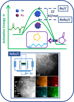 同时,梁长海教授与美国南卡罗来纳大学John R. Monnier和John R. Regalbuto教授合作进一步在Re-Ir/C催化剂制备及其丁二酸水相加氢方面取得了突破性的成果(ACS Catal., 2018, 8, 6486-6494)。研究工作采用强静电吸附法研制高分散Re-Ir/C催化剂,并用于丁二酸水相加氢反应。研究发现Re-Ir间相互作用的形成显著提高丁二酸加氢反应催化活性,并高选择性生成中间产物丁内酯。在水相酸加氢反应中,双金属纳米合金催化剂由于其适宜的电子效应、几何效应、空间效应和有序结构等特殊性质,展现出较传统金属催化剂更加优异的效催化活性及稳定性。
