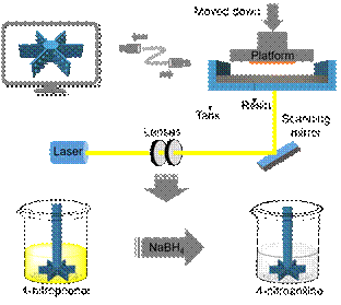在催化活性设计方面,研究者设计合成具有丙烯酸酯基团的咪唑基离子液体,通过光聚合方式修饰在搅拌桨的表面,并与四氯合钯阴离子交换经NaBH4还原,得到具有Pd催化活性的界面。该研究团队利用此思路设计制造的具有棱柱界面结构和Pd催化活性的搅拌器,很好的将扩散与反应过程充分耦合在一起,对硝基苯酚还原、Suzuki偶联和染料污水脱色反应都起到很好的催化效果。热过滤实验显示催化剂泄漏极低,搅拌器可循环多次使用,并且在反应后搅拌器可以方便的从反应液中直接提拉分离出来,克服了常规搅拌反应中催化剂难以分离的问题。