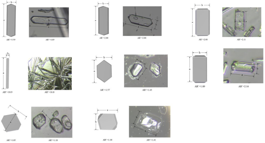 采用分子动力学(MD)方法预测溶剂中的晶体形貌,然后采用向后逐步回归方法选择合适的溶剂描述符,建立晶体长径比与溶剂描述符之间的构效关系(如图1所示)。