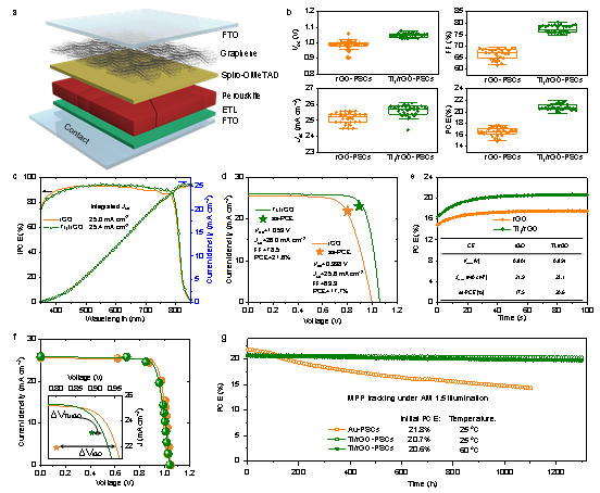 图2:Ti1-rGO基C-PSCs的光电特性及稳定性