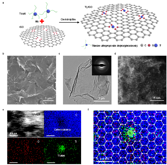 图1:Ti1-rGO的制备示意图及其形貌结构表征