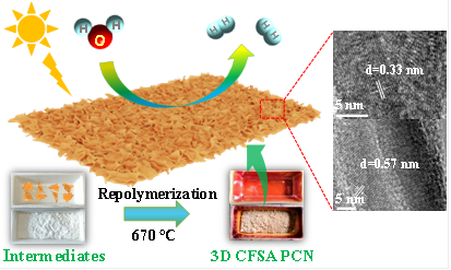 该工作构建的3D CFSA PCN纳米片同时具有丰富的活性位点、增强的可见光吸收以及高效的载流子分离和传输效率,解决了现有合成方法制备的PCN纳米片存在的缺陷,实现了对光催化反应中三个关键过程(光吸收、电荷分离、表面反应)的协同优化,最终提高了PCN的产氢活性,为新型高性能PCN基光催化材料的制备提供了一种新策略。