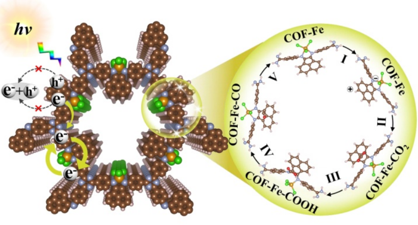 图 1. Fe SAS/Tr-COF光催化过程示意图