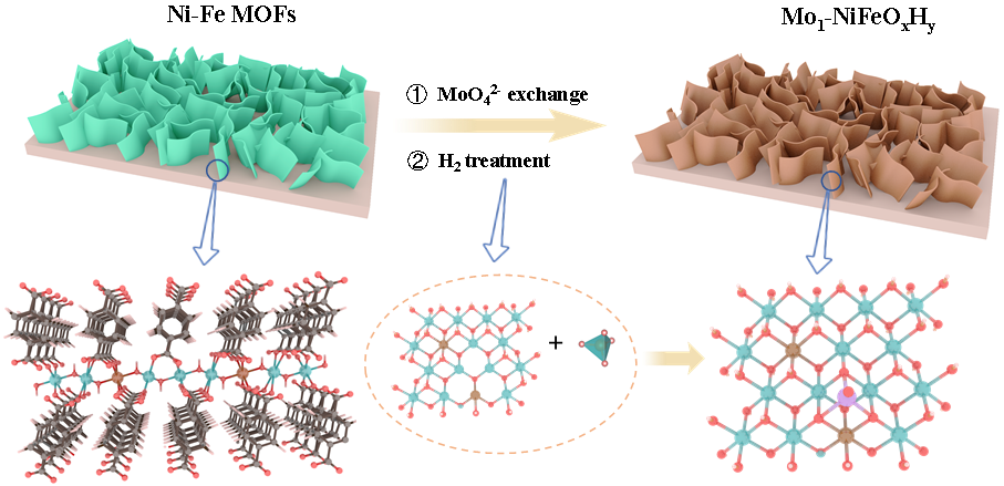 图1. Mo1-NiFeOxHy单原子活性位点催化剂阵列合成示意图