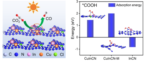 光驱动CO2转化是一个非常有前景的碳中和技术路径,成为当前催化领域研究的热点。但是光生电荷的快速复合以及表面活性位点的缺乏限制了光催化性能的提高。这对催化剂的设计合成提出了更高的要求。大量报道证明单原子催化剂在CO2还原反应中具有优异的催化活性。尤其,单原子金属独特的不饱和配位环境具有灵活的电子结构,通过引入其他组分或者制造缺陷可以调节孤立金属的电子结构。P族金属In在电催化CO2制CO和HCOOH中显示出独特的性能,这为其在光催化CO2应用提供更多的可能。而且,具有多种功能的催化剂能够更好地满足CO2反应中的多种需求,从而达到较高的光催化性能。特别是调节金属位点的电子结构,使其双金属位点间发挥协同效应和电子重分布,进而调控关键中间体在双原子位点上的吸附强度至关重要。