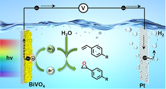 受卤化物介导的电催化烯烃氧化的启发,精细化工国家重点实验室太阳能燃料与太阳能电池团队李斐教授以BiVO4半导体为光阳极、Pt为阴极构建光电化学池,通过在水/乙腈电解质中加入NaBr作为氧化还原中介,成功实现了高效高选择性光电催化烯烃环氧化,研究成果于近日发表于《美国化学会志》(J. Am. chem. Soc. 2022,144, 19770-19777)。