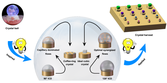 高质量晶体的定向制备对精细化工、制药工程、生物工程等领域有重要意义。目前,高质量晶体的结晶条件初步筛选多依赖于微量液滴结晶,其筛选效率和制备精准性均有待提高。微液滴蒸发过程中,内部的复杂流场对晶体的成核和沉积生长等基本传递过程有显著影响,其调控机制的研究与应用也成为晶体工程的前沿方向。