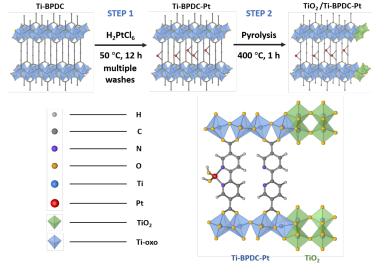 图1. TiO2/Ti-BPDC-Pt光催化剂的合成示意图