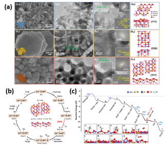图2. (a) NiCo2O4结构形貌及暴露晶面分析, (b)反应机理示意图, (c)乙烷催化氧化反应路径分析