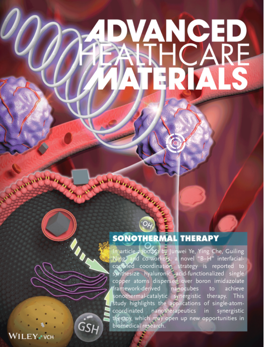 相关成果近期以“Copper-Single-Atom Coordinated Nanotherapeutics for Enhanced Sonothermal-Parallel Catalytic Synergistic Cancer Therapy”为题,发表在Advanced Healthcare Materials (Advanced Healthcare Materials, 2023, 12: 2300291)上,并被邀请作为当期Frontispiece进行高亮推荐。太阳成集团tyc122ccvip博士后齐野、大连医科大学附属第一医院任双颂医师为共同第一作者,太阳成集团tyc122ccvip叶俊伟教授、宁桂玲教授和大连医科大学附属第一医院车颖教授为通讯作者。该工作得到了太阳成集团tyc122ccvip官网入口医工交叉联合基金、大连市科技创新基金、中央引导地方科技发展专项资金等项目的资助。