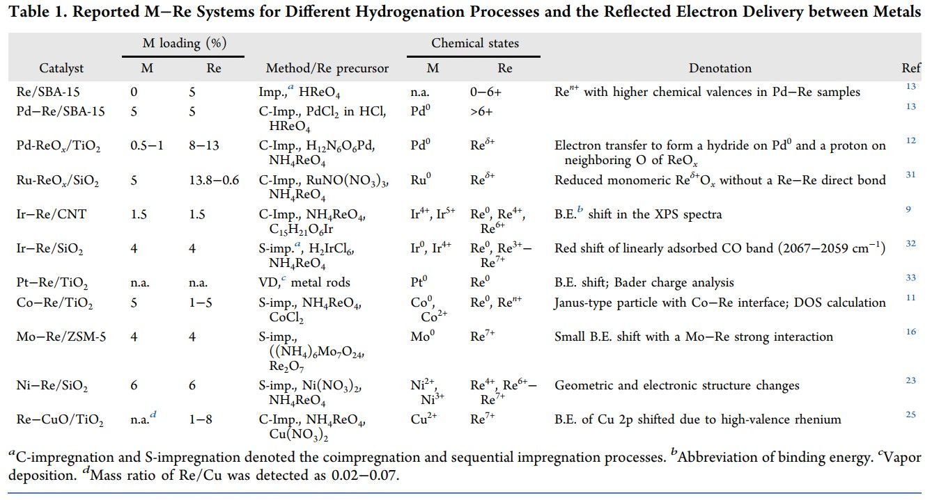双金属Re-M催化体系中的Re