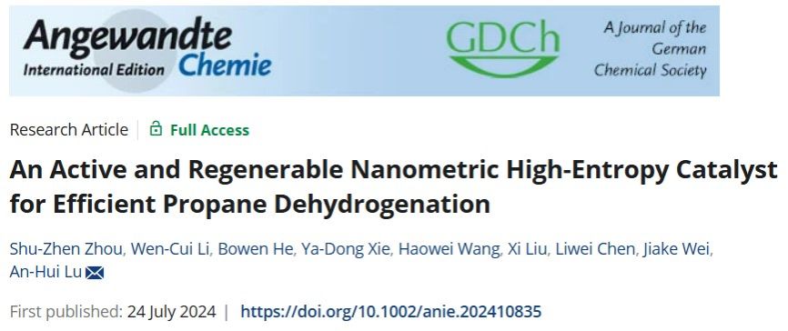 最近,公司太阳成集团tyc122ccvip陆安慧教授团队借鉴高熵氧化物和合金的优良特性,以活性金属铂(Pt)为研究对象,采用高熵策略分散和锚定铂原子,设计出一种具有高活性、高稳定性且易再生SiO2负载型纳米(MnCoCuZnPt)高熵PDH催化剂。这一研究成果为催化材料的开发提供了新的思路,并展示了高熵策略在催化剂设计中的潜力。相关成果以“An Active and Regenerable Nanometric High-Entropy Catalyst for Efficient Propane Dehydrogenation”为题发表在Angewandte Chemie International Edition期刊上。论文通讯作者是陆安慧教授,第一作者是周淑珍博士。