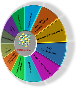 过渡金属硅化物作为一类廉价且富集的无机材料,由于硅原子与金属间的相互作用导致金属晶格的扩展以及金属键长的增加,使得金属d能带收缩和费米能级附近的态密度增大,具备不同于过渡金属的物理和化学性能,如高熔点、低电阻、高化学稳定性等。近年来,过渡金属硅化物作为催化新材料逐步引起广泛关注,其在传统选择加氢、CO甲烷化、硅烷化、加氢脱氯、加氢脱硫、加氢脱氧、脱氢和氢解、氧化、碳纳米管生长、N2活化等反应中展现出异于传统金属催化剂的特性,并在新兴光催化和电催化领域崭露头角。近期,太阳成集团tyc122ccvip官网入口梁长海教授和陈霄副教授给予其多年的研究工作对金属硅化物的组成、结构及催化性能进行了系统的综述。相关工作发表在Catalysis Science & Technology(2019, 9, 4785-4820)上,并被选为2019 Catalysis Science & Technology HOT Articles及作为封底予以报道。