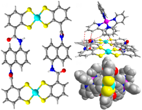 精细化工国家重点实验室段春迎教授团队在金属-有机超分子体系限域空间的可控构筑研究中取得了系列创新成果,并利用金属-有机超分子体系的限域作用,在催化过程中电子转移过程的控制、空间与立体结构的匹配和多步反应串联与协同研究领域实现了重要突破(Angew. Chem. Int. Ed., 2017, 56, 8692−8696;Angew. Chem. Int. Ed., 2017, 56, 15284−15288)。近日,该团队通过引入高效质子还原催化中心邻苯二硫酚钴配合物,成功设计组装了两例新型负电荷金属-有机超分子限域结构,该结构通过静电作用与多重氢键作用的协同,将多个正电荷的光敏剂Ru(bpy)32+结合于二硫酚钴催化中心的周围,进而拉近光敏中心与催化中心的距离,使催化效率成倍增加,相关研究成果已发表于Chem. Commun., 2019, 55, 8524−8527,并被选为封面文章予以报道。