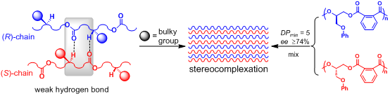 生物体内基因表达是一个典型的手性识别过程。它是通过超分子作用力在分子之间自组装成为稳定、结构精细,且有特定功能的聚集体。在高分子领域,通过立体选择性相互作用,两种构型相反的聚合物链在等量混合时也有可能组装为结构紧凑的结晶性立体复合物,但事例很有限。