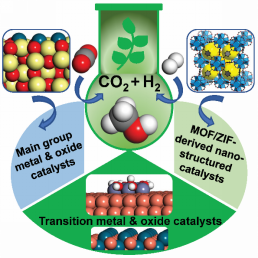 甲醇是一种重要化工原料,可作为内燃机和燃料电池的燃料,也可作为生产化学品和燃料的平台分子。通过多相热催化将CO2与H2转化为甲醇是一种颇具前途的方法,在过去的几十年里受到了广泛的关注。近年来,研究人员在金属、金属氧化物、金属间化合物等类型催化剂的开发、及其在CO2制甲醇领域取得了重要进展。此外,利用纳米材料的催化特征,可以有效调控催化剂的组成和表面结构,制备具有优势的催化新材料。近年来,通过研究者的不断努力,在催化材料研发上已经取得了长足进步,但现有催化材料在反应速率和稳定性方面仍需进一步提高。最近,郭新闻教授团队与美国佐治亚理工公司姜潇博士合作,针对CO2加氢合成甲醇反应中催化剂性能、催化剂结构-活性关系、理解反应机理和确定设计改进催化剂的关键模拟参数的重要性进行了系统的综述,发表在Chemical Reviews上。