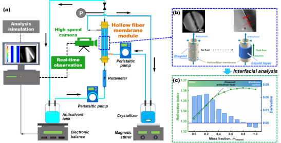 图1 MAAC过程流程图(左)、界面液层在线观测图(右上)及液层界面折光率分析图(右下)