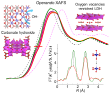 于畅教授、邱介山教授与美国斯坦福大学、SLAC国家加速器实验室刘宜晋博士等合作,采用原位同步辐射吸收谱学技术,揭示和解构了超级电容器用NiCo碱式碳酸盐材料在电化学循环过程中的动态重构过程。研究结果首次证实,在电化学循环初期,由于Co离子的不可逆氧化还原反应,NiCo碱式碳酸盐纳米线会转变为富含氧缺陷的NiCo氢氧化物纳米片(NiCo LDH)。DFT计算表明,NiCo LDH中5配位的Co位点具有最优的氧化还原反应能垒。与初始NiCo碱式碳酸盐纳米线相比,经电化学循环150次后,富含氧缺陷的NiCo LDH的比容量提高了约10倍。这一工作,揭示了NiCo碱式碳酸盐纳米线的本征活性中心,为原位条件下探究材料活性中心的结构和反应性能演变提供了实验依据和理论指导,亦为基于电化学调控的策略,设计构筑高性能的电极材料开辟了新思路。研究成果发表在能源材料化工学科领域的著名学术刊物上(Joule 2020, 4, 673-687)。