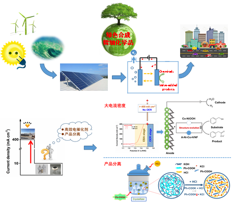 传统的精细化学品合成方法,耗能高,通常需要高温、高压及添加助剂(部分添加剂有毒、有害)提升转化效率,不利于节能和环保。与传统的热催化技术相比,精细化学品的电催化合成技术具有反应条件温和、反应速度快等优势,能够实现精细化学品的高效绿色清洁制备,更重要的,电催化合成工艺能够与太阳能、风能、潮汐能等可再生能源有机融合,利用大量的低品位新电能,降低精细化学品的生产成本,减轻或避免环境污染问题。目前,精细化学品的电催化高效合成,面临三个瓶颈性的约束问题需要解决:①新结构高性能电催化剂的设计合成;②如何避免竞争性副反应,在工业级的大电流密度下实现精细化学品的规模化/工业化生产;③如何将电催化制备的反应产物从成分复杂的电解质溶液中高效分离和提纯成合乎要求的产品。
