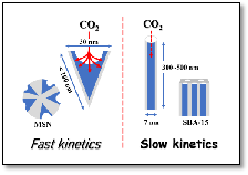 郭新闻教授团队近期利用倒锥形孔结构的介孔二氧化硅纳米球(MSN)作为聚乙烯亚胺(PEI)的载体制备了新型CO2吸附剂。与传统的SBA-15负载的吸附剂相比,MSN的独特孔道结构使其具有更快的吸附速率、脱附速率以及在较短吸附时间内更高的吸附量(工作容量提高了50%,CO2吸附速率提高了将近30%,CO2脱附速率提高了70%)。此外,该新型吸附剂的吸附活化能和脱附能量较低,有利于降低吸附脱附循环过程中的能量消耗,具有良好的实际应用前景。相关研究结果发表在能源领域顶级期刊Appl. Energy 2020, 264, 114637。