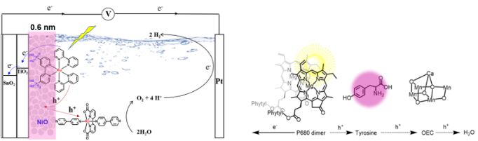 以此为基础,进一步创新了分子催化剂在界面的组装方式,将NiO空穴传输层嵌入光敏剂和催化剂之间,模拟PSII中酪氨酸摆渡电子的功能和天然酶体系的电子传递链,使光阳极稳定性获得大幅提升,为构建能够长时间工作的光解水体系提供了可行策略,该成果发表于《美国科公司院刊》(Fei Li*, T. J. Meyer* et al., PNAS, 2020, 117, 12564)。以上工作得到了国家自然科学基金和辽宁省兴辽英才计划的支持。