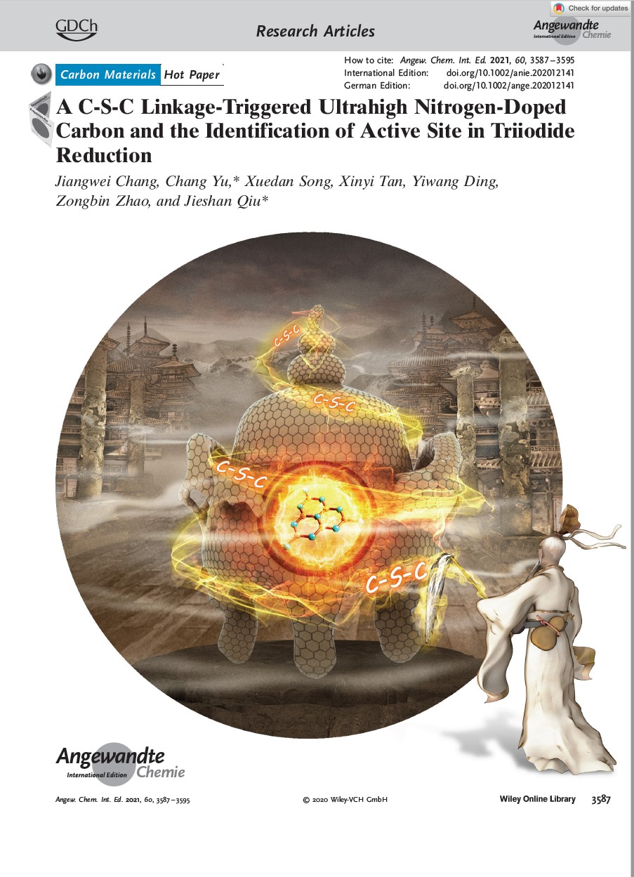 论文信息:A C-S-C linkage-triggered ultrahigh nitrogen-doped carbon and identification of active site in triiodide reduction. Angew. Chem. Int. Ed. 2020, 60, 3587-3595;