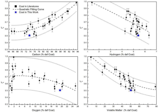 图1. 文中测试的煤芳碳率与文献中典型煤种的比较