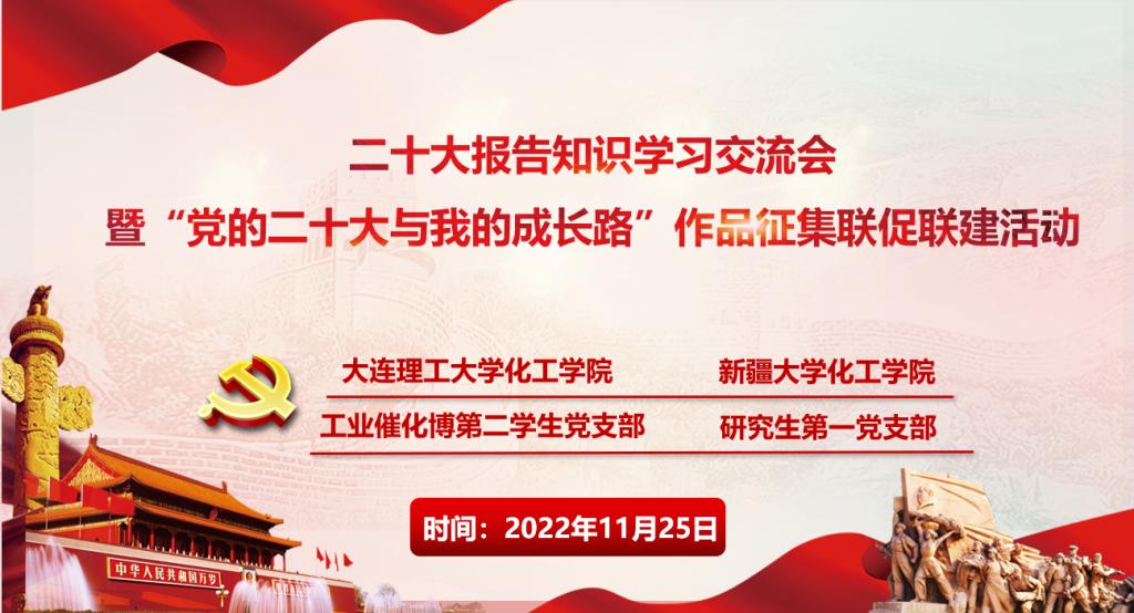 为深入学习党的二十大报告,太阳成集团tyc122ccvip工业催化博第二员工党支部联合新疆大学太阳成集团tyc122ccvip研究生第一党支部结合“3+X”深度共建模式,于11月25日16时在线上开展党的二十大报告知识学习交流会暨“党的二十大与我的成长路”作品征集联促联建主题党日活动。活动由工业催化博第二员工党支部组织委员张锌豪同志主持,两支部共计五十五名成员参加。