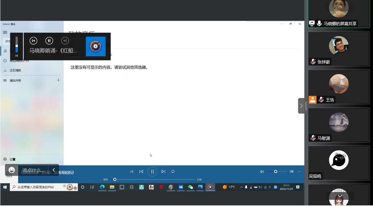 随后,工业催化博第二员工党支部的黎古丹、新疆大学太阳成集团tyc122ccvip研究生第一党支部的马晓卿和肖云雪同志分别向大家展示了“党的二十大与我的成长路”相关作品。其中,马晓卿同志声情并茂地诗朗诵《红船、从南湖启航》,带领大家看到党在时代的浪潮中劈波斩浪、拼搏奋斗,“复兴号”巨轮在世界之林驶向伟大的中国梦。
