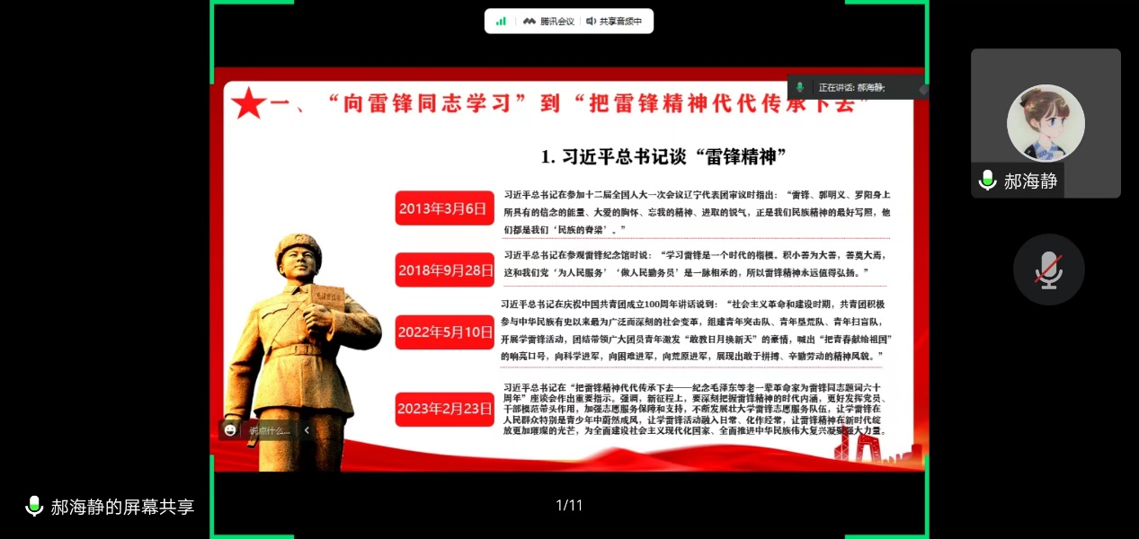 随后,两个支部的同学分别对学习雷锋精神的感悟进行分享。太阳成集团tyc122ccvip工业催化博第二员工党支部尚淑洁同学表示:“通过这次活动,我认识到雷锋是时代的楷模,雷锋精神是永恒的。我们应把崇高的理想信念转化为具体行动,体现在平凡的工作生活中,为祖国建设作出自己应有的贡献,把雷锋精神代代传承下去。”新疆大学太阳成集团tyc122ccvip研究生第一党支部赵贵涵同学表示:“作为青年党员,我们也要以实际行动续写新时代的雷锋故事,从小事做起,为身边同学服务,时刻怀有热情,做一个温暖的人。”