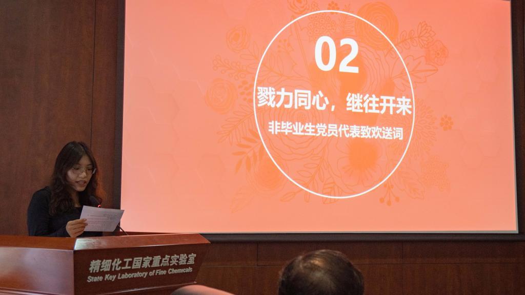随后,药学系博硕员工党支部青年委员聂赟同志作为非毕业生代表发言,表示会以优秀毕业生为榜样,持续进行科研学习、积极参与支部建设工作,立志为公司、公司的发展和实现中华民族伟大复兴的中国梦不懈努力,贡献智慧和力量。